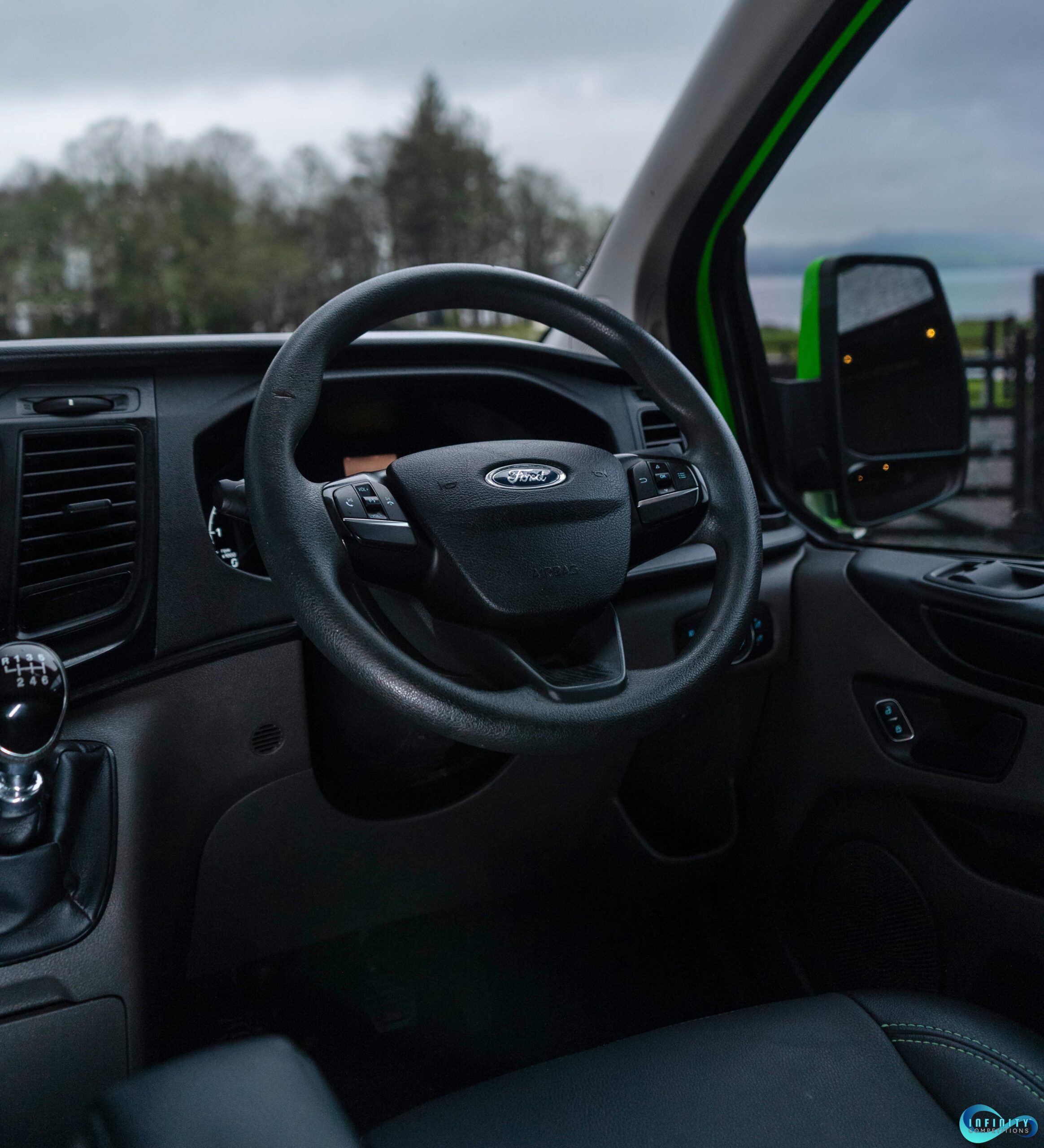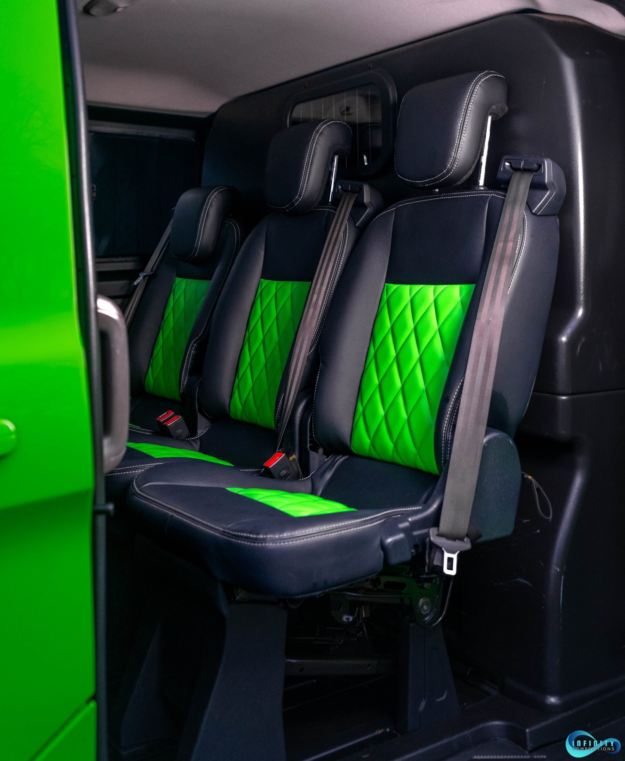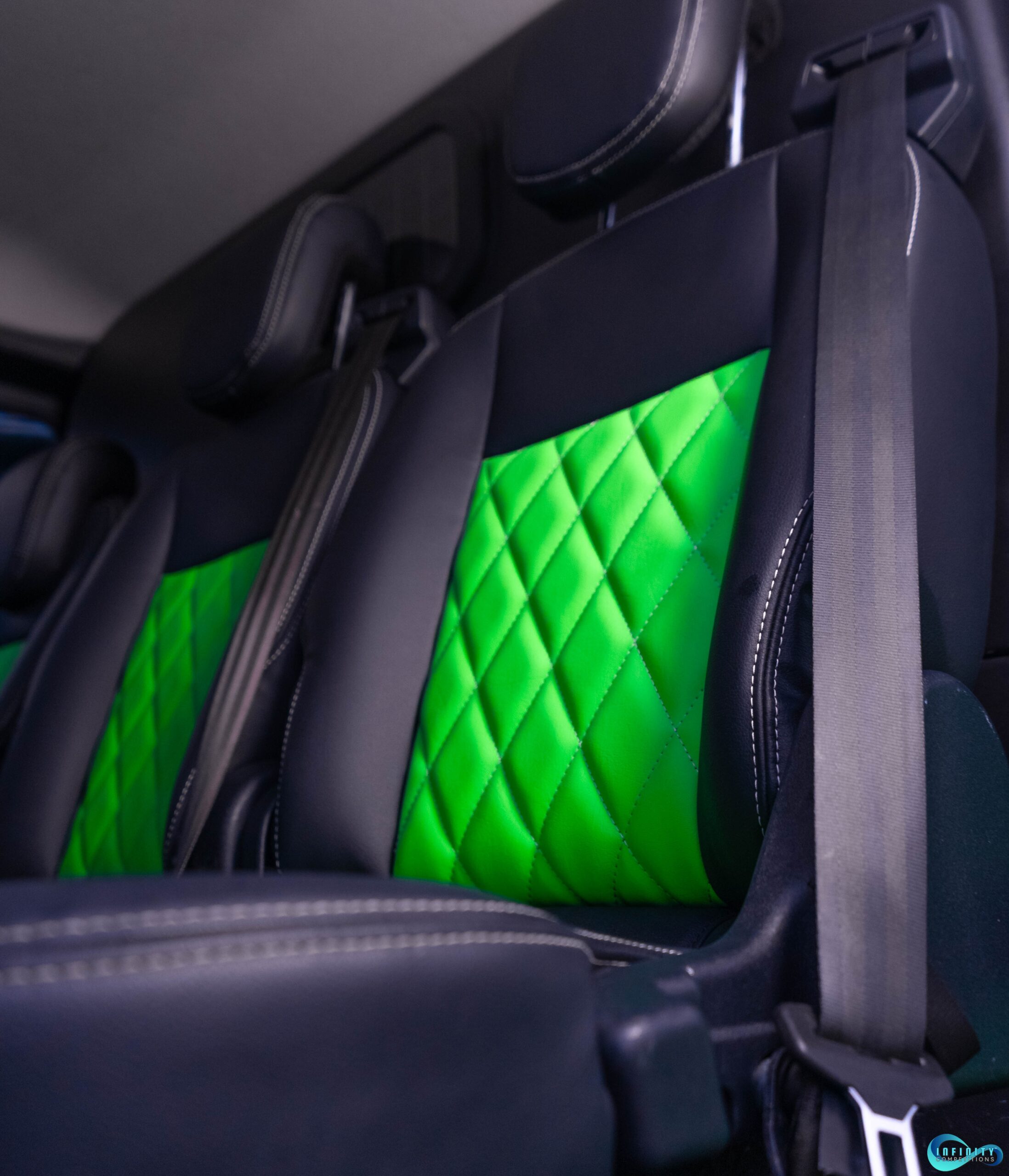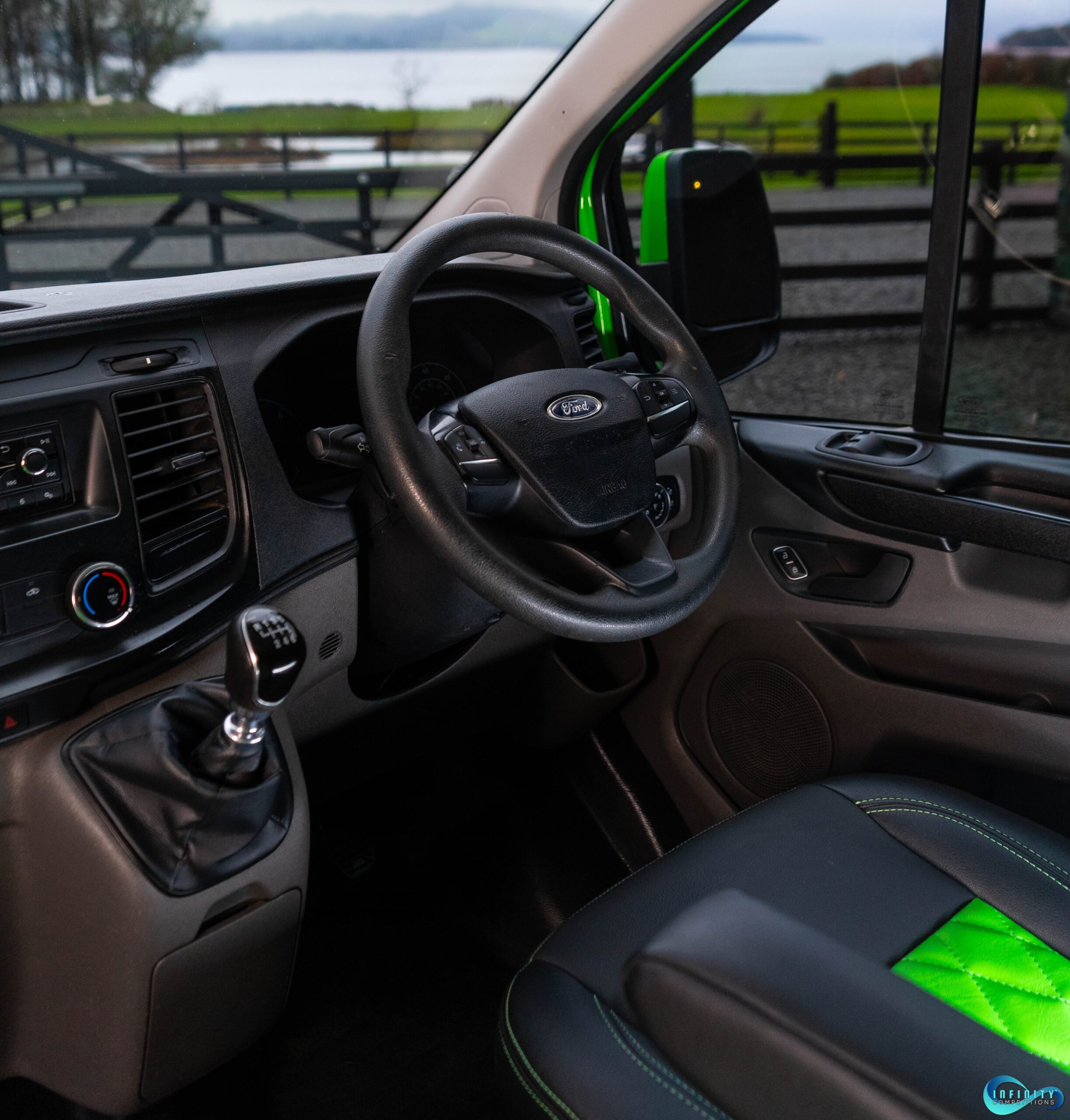 This 2019 model has benefited from a comprehensive cosmetic overhaul, including a simply stunning custom paint finish in Ford RS Green. It’s got the MSRT Wide body kit, gloss black rims, and six leather chairs with matching RS Green diamond-stitched cushions.
